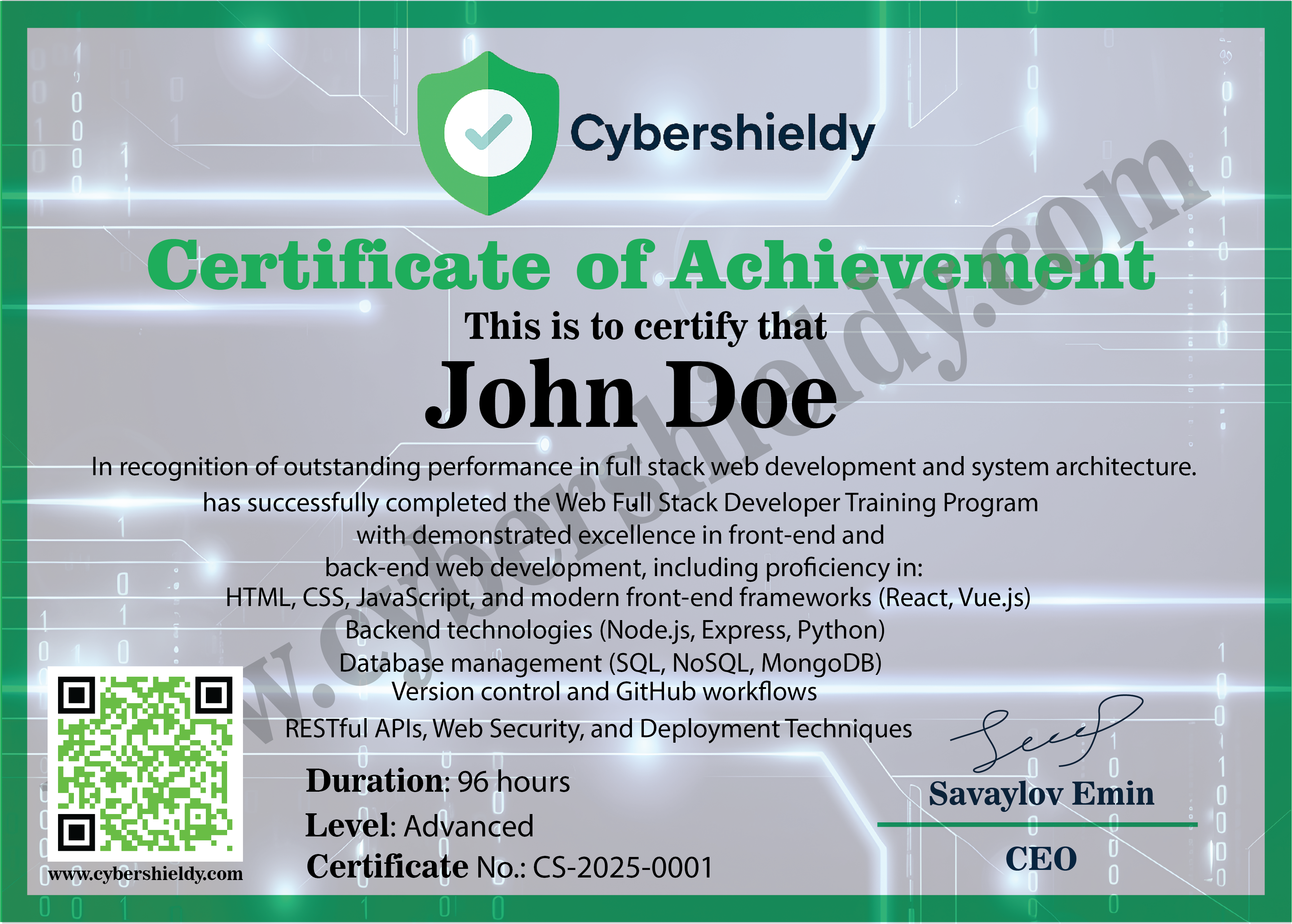 - CyberShieldy Official Web Developer Certificate qazanırsan